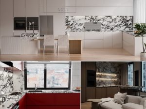 The marble lines of a hundred miles are naturally stitched, and the position of the cabinet is cleverly used. It creates the flexibility of space and provides rich inspiration for different home environments.