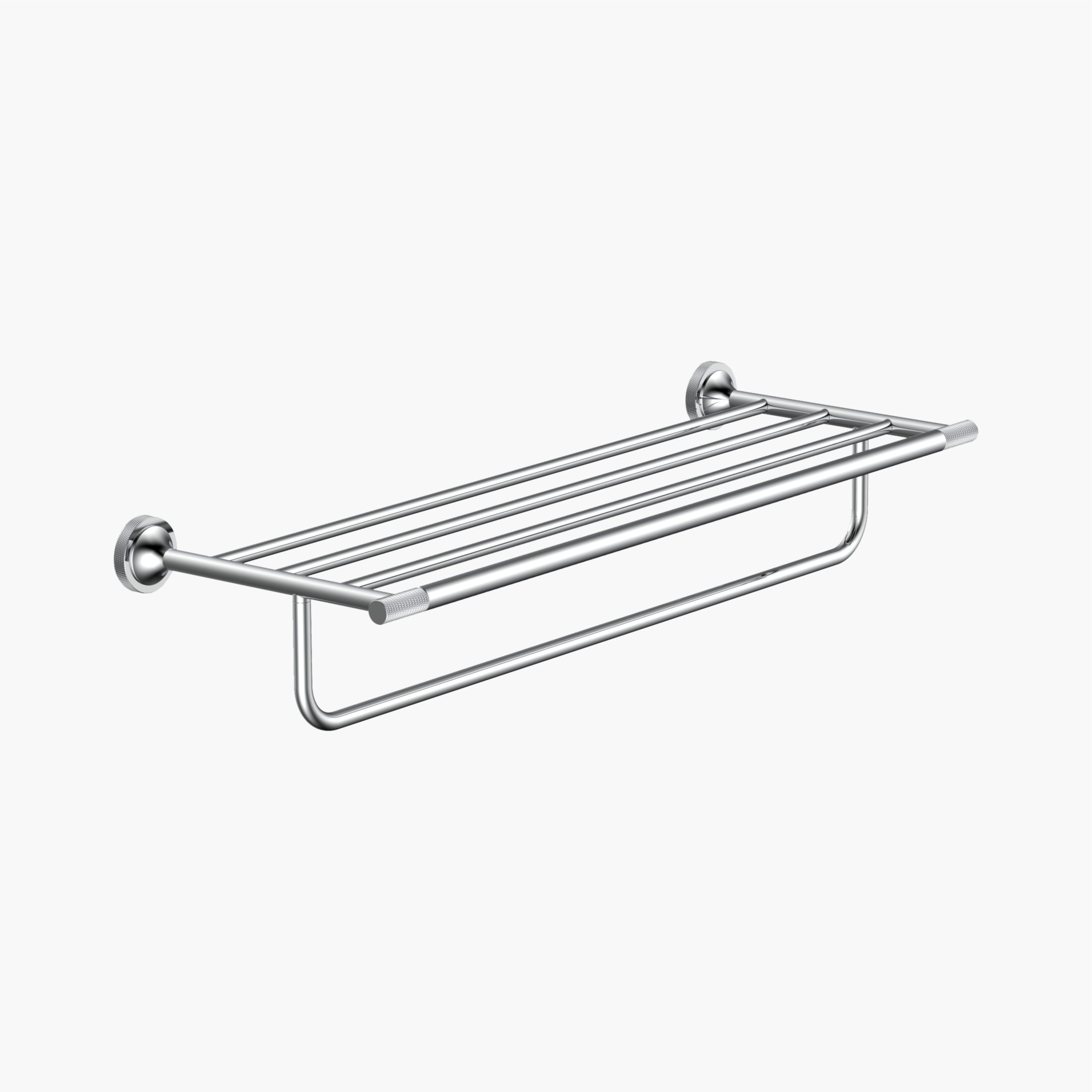 The TA-BEL15 60cm double bathtowel rack from the BELLA series ingeniously combines practicality with elegant craftsmanship. This wall-mounted bath towel stand adopts the series’ signature circular structure and can match modern interior decoration styles. The hardware is decorated with BELLA’s unique knurled details, adding texture and refinement, and enhancing the overall good appeal. This modern towel bars for bathrooms features two functional compartments: the spacious upper shelf can neatly place folded bath towels, while the lower crossbar can be used to hang and dry bath towels. The bath towel rack is made of brass to ensure its stability and can resist moisture and daily use for a long time. The simple design and sturdy structure make it reliable in performance, keeping your bath towel neat and orderly, within easy reach. TA-BEL15 offers a variety of high-end finishes – chrome, matte black, brushed nickel, gun metal and brushed gold – allowing homeowners and designers to seamlessly coordinate with other BELLA series accessories to create a harmonious and fashionable bathroom environment.