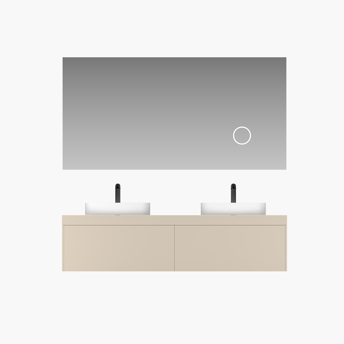 The FIONA Series TV-FIO20 brings together refined elegance and modern practicality, designed to elevate spacious bathroom interiors. The ivory-white bathroom cabinet is made of 18mm thick painted plywood and features two wide drawers and smooth Unihopper rails. The double-panel washbasin features a soft matte white finish, combining both aesthetics and practicality. Smooth white artificial stone countertop, dirt-resistant and wear-resistant. It is equipped with an LED makeup mirror, a convenient touch switch and an inbuilt magnifying glass function, making it easy for you to clean. The highlight of this bathroom cabinet is the frameless LED vanity mirror with a size of up to 2000×1000 millimeters, made of 5-millimeter thick copper-free eco-friendly silver glass. Its harmonious ivory white tones and smooth geometric shapes perfectly match modern homes that pursue classic design and comfort.