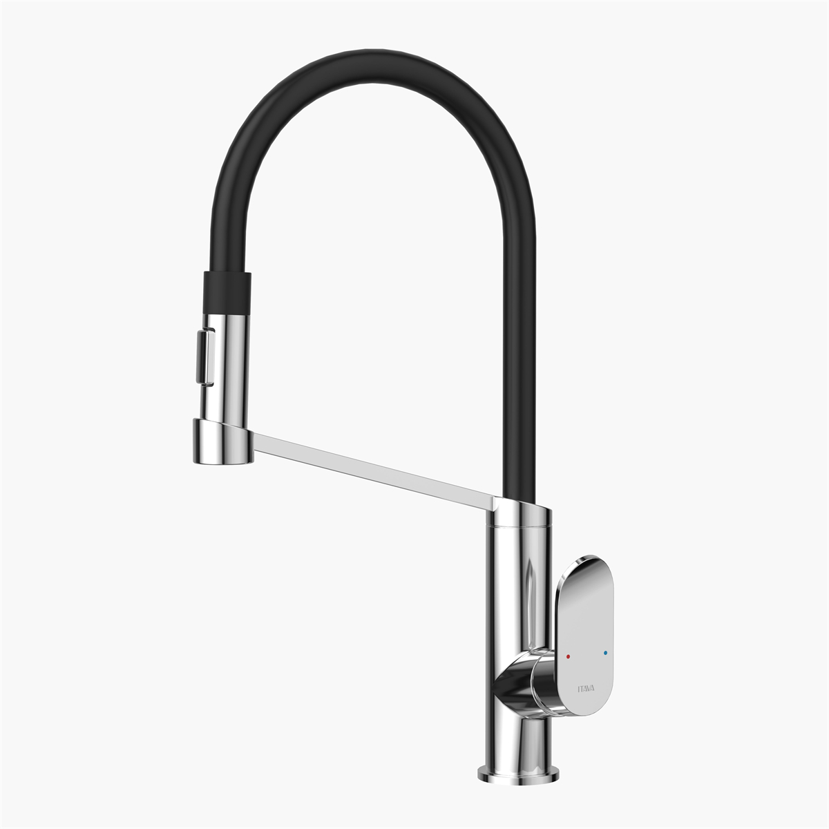 The TF-ARO2101 Single-Lever Kitchen Mixer infuses modern elegance into your kitchen. Its single-hole design provides a sleek presence on countertops. The faucet’s distinctive curve and single-lever operation combine style with convenience. It serves as both a functional tool and a stylish statement piece, showcasing your taste for contemporary kitchen design.