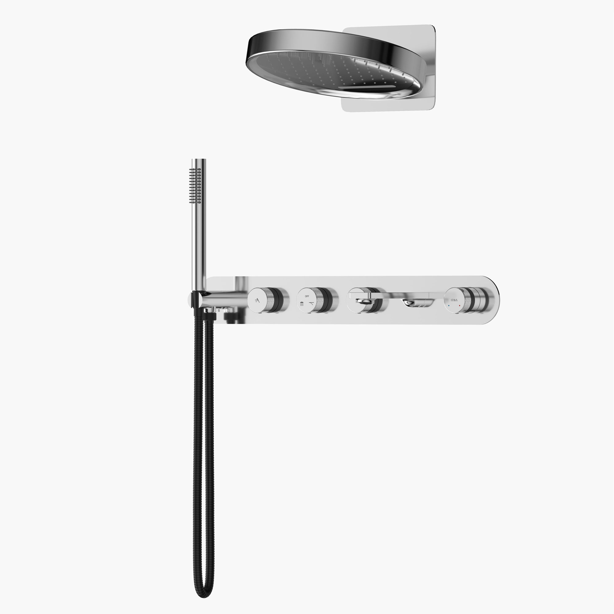 TF-BUR4705 four-function wall-mounted showerhead, redefining the luxury of the bathroom. Its round and simple design, equipped with a full-body rain shower head, a handheld shower head for centralized flushing, a special water outlet for bathtubs and a convenient diverter, allows you to switch functions with just a touch. The chrome surface resists water stains and fingerprints. Standardized interfaces make installation easy and it is an ideal choice for upgrading the quality of the bathroom. Whether you start your day with a refreshing shower or relax in a deep soak, this showerhead can bring a spa-level excellence experience to your home.