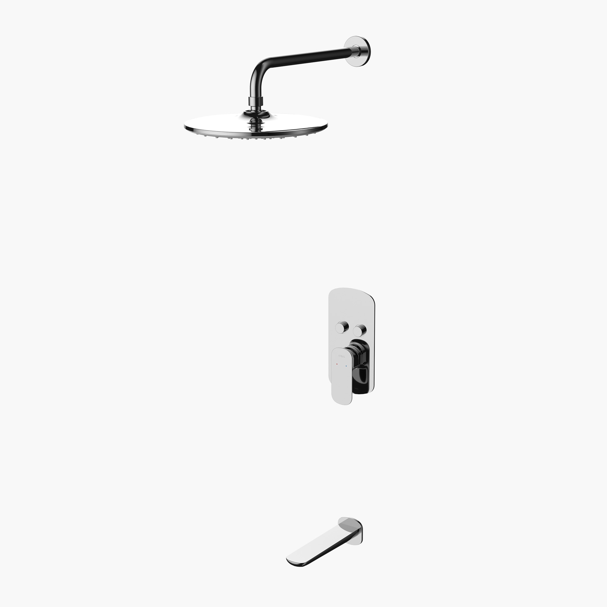 The TF-LOR5720 is a built-in dual function shower/tub hybrid faucet that hides the technical components inside the wall, keeping the exposed part simple and beautiful, visually balanced. The exposed control panel and water outlet are proportionate, echoing the unique aesthetic concept of the Lora series.